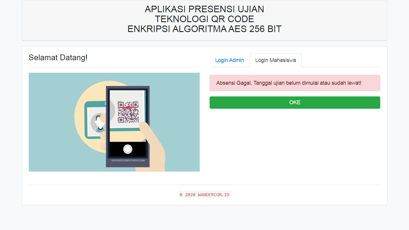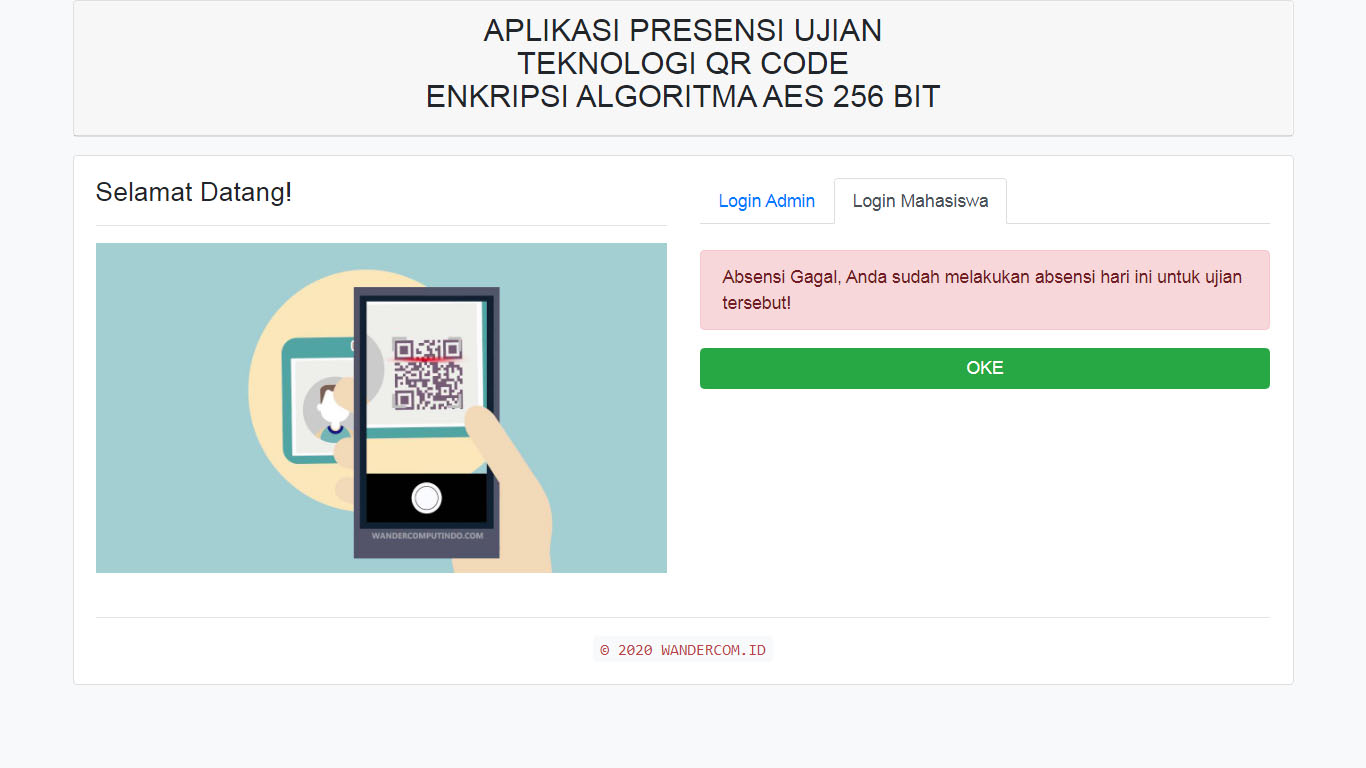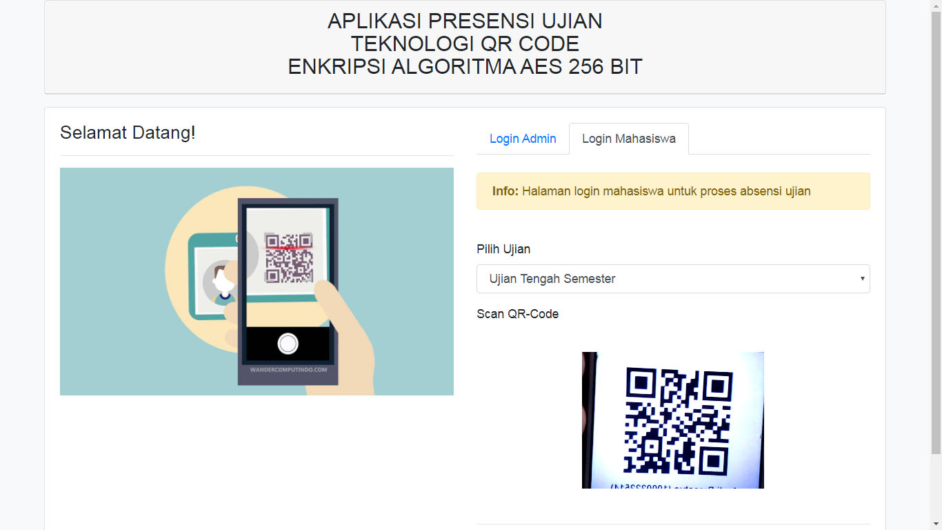 Home > Aplikasi Website > Aplikasi Absensi Ujian QRCode Enkripsi AES 256