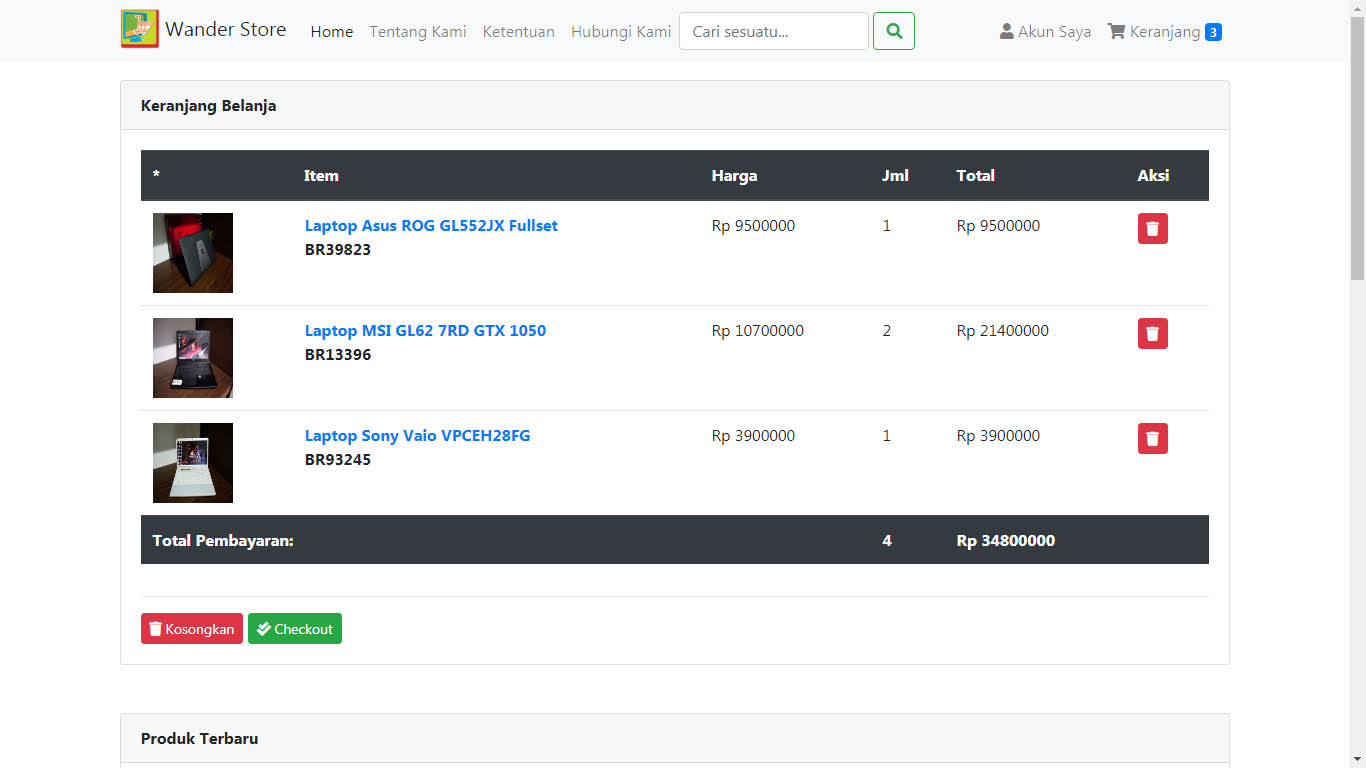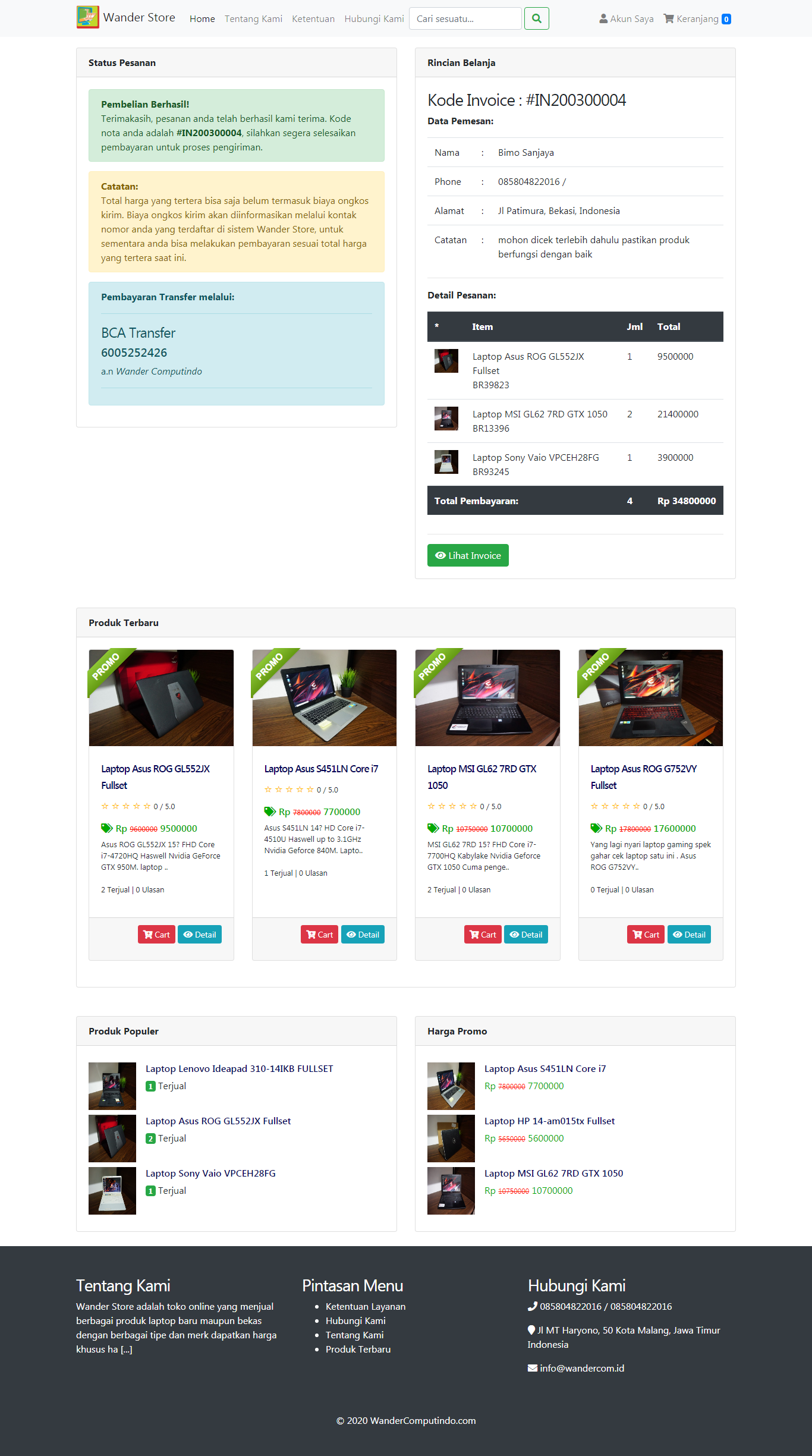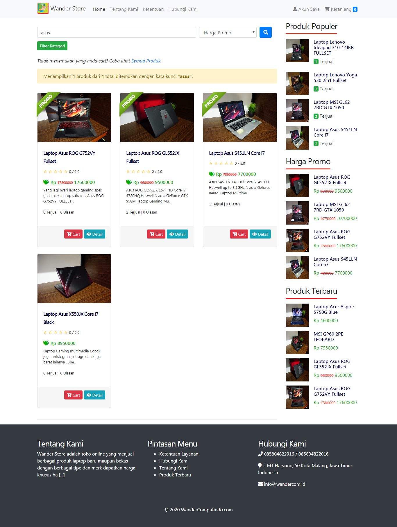 Contoh Website Aplikasi Toko Online E-commerce Menggunakan WanEcom: