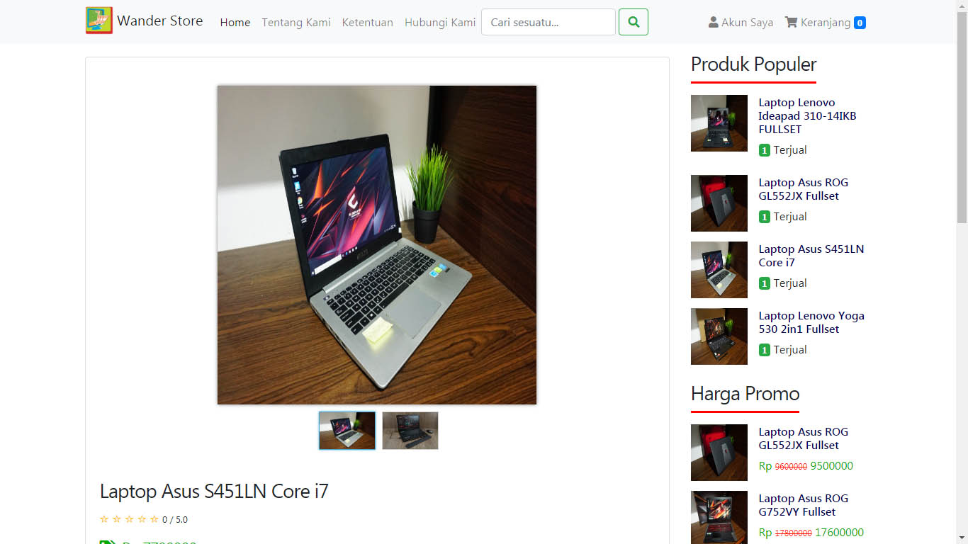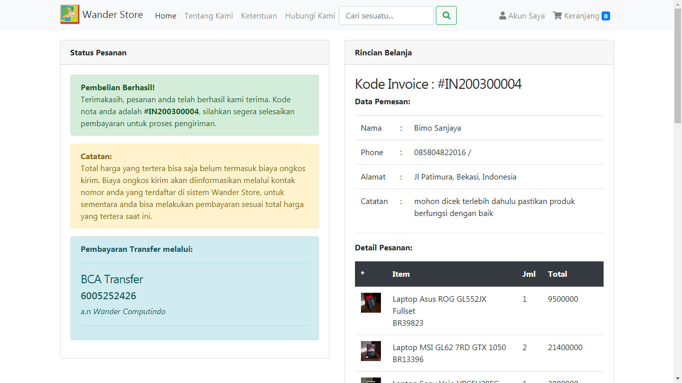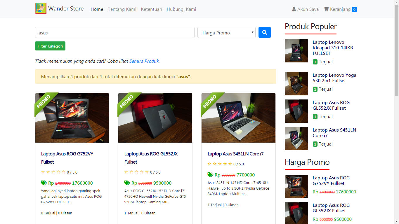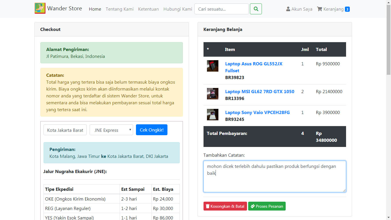 Contoh Website Aplikasi Toko Online E-commerce Menggunakan WanEcom: