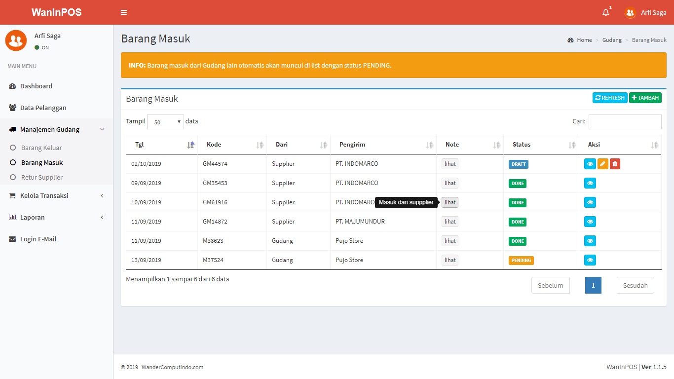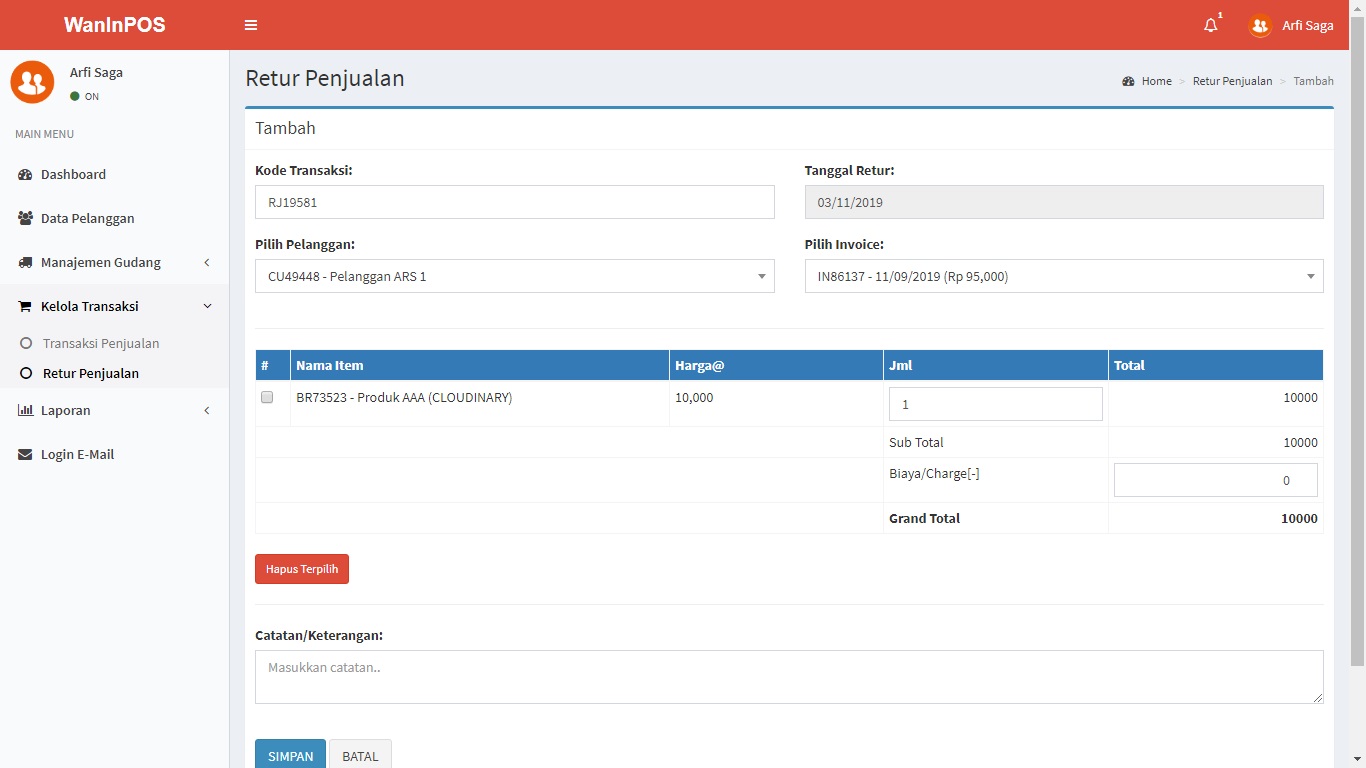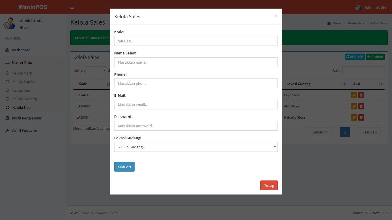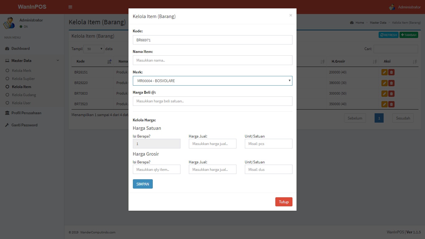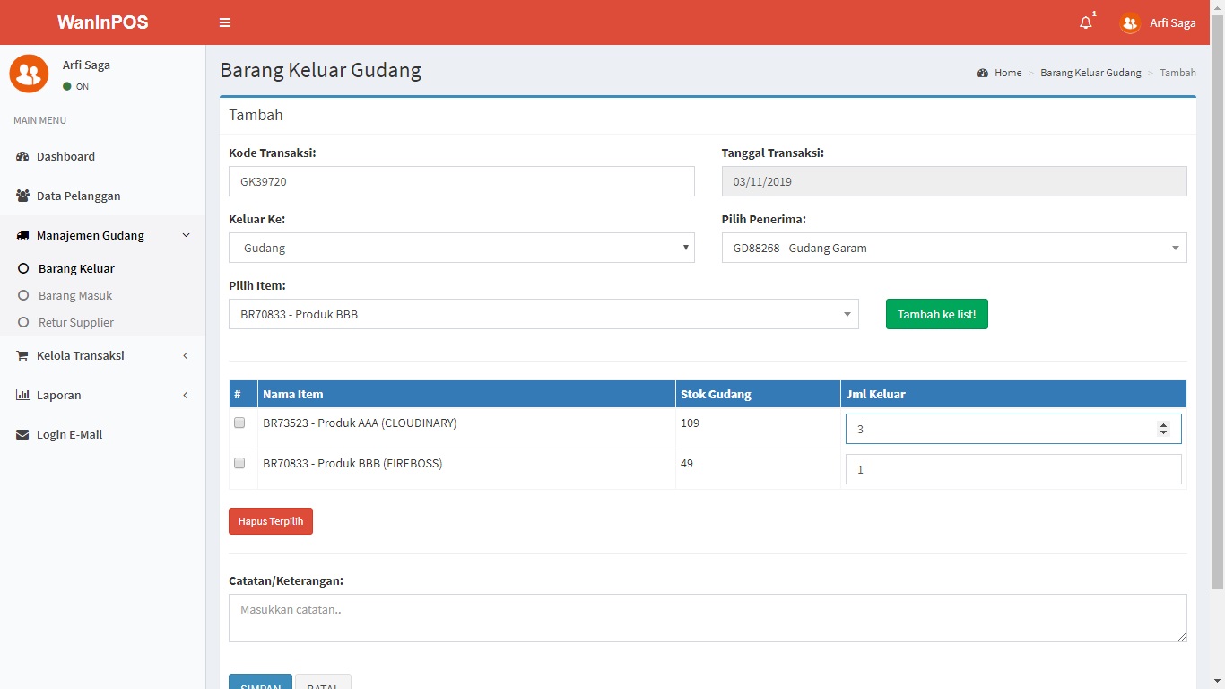 WanInPOS: Sistem Aplikasi Gudang (Inventory) dan Penjualan (Point Of Sales)