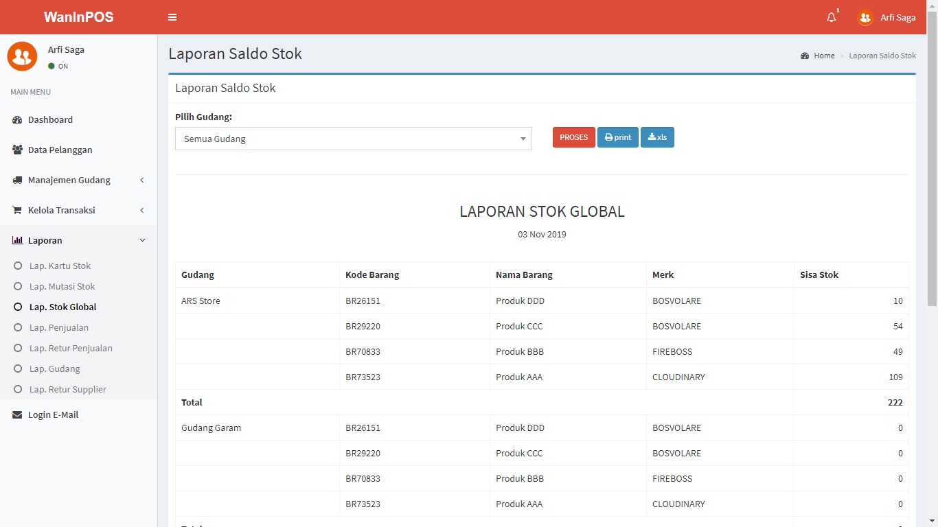 - Laporan Stok Global