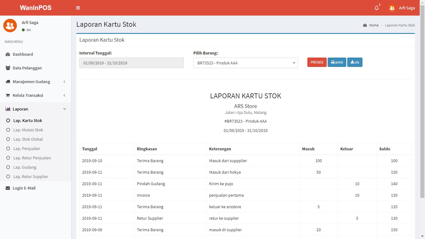 - Laporan Kartu Stok