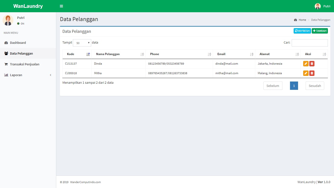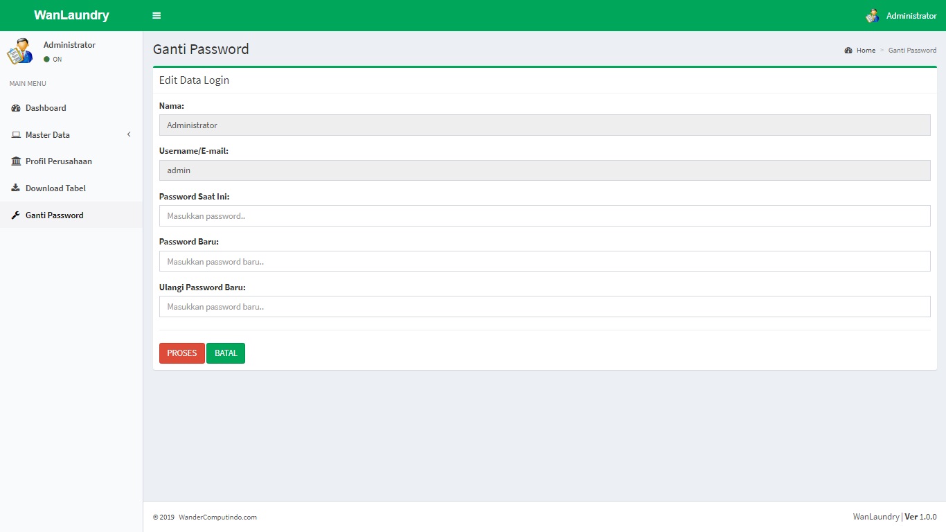 WanLaundry dibekali tampilan modern dan responsive, menjadikan akses setiap menu lebih cepat dan mudah digunakan. Fitur dan processing data modern mampu membuat pengalaman pengguna lebih nyaman dan menarik.