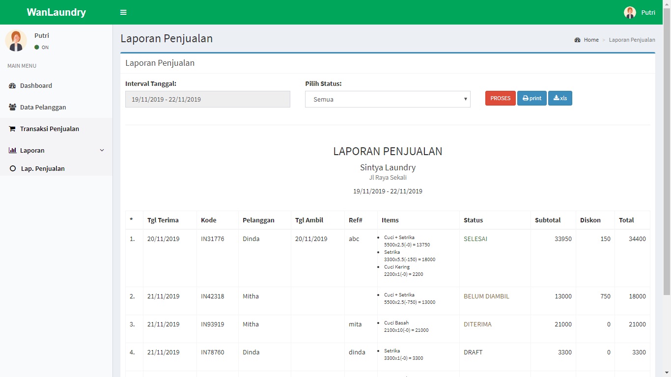 Mau mengelola laporan penjualan anda? tidak masalah, menggunakan WanLaundry adalah solusi terbaik dengan fitur export laporan ke xls (excel).