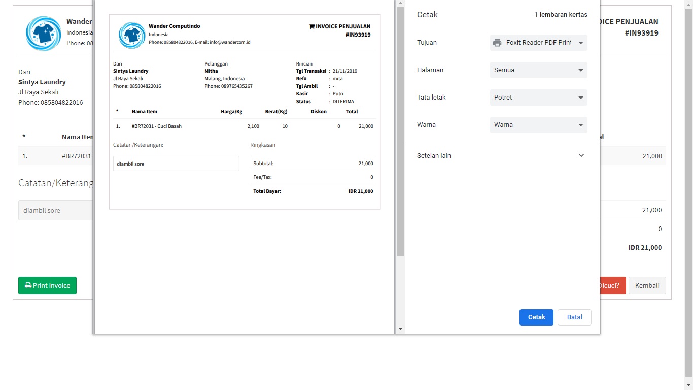 WanLaundry: Sistem Informasi Aplikasi Kasir Penjualan Jasa Laundry