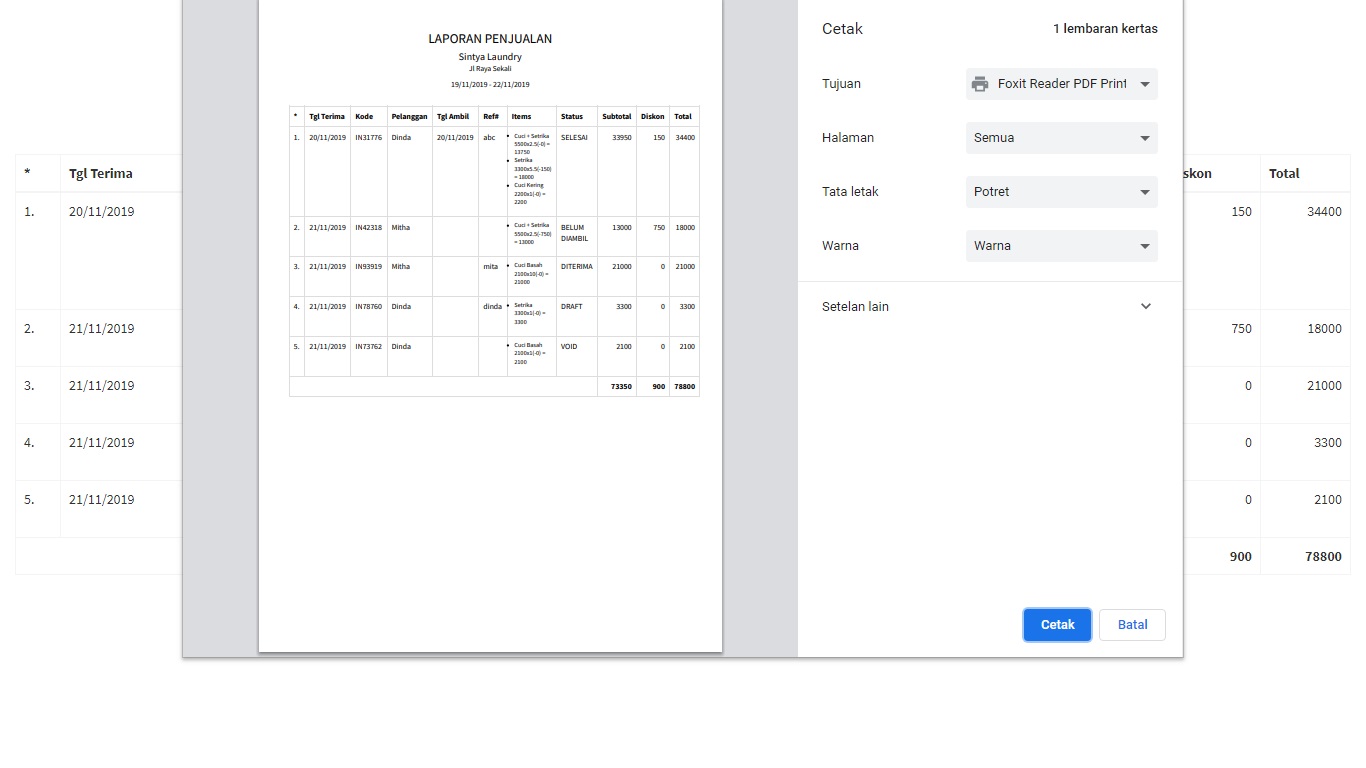 - Laporan Penjualan Harian, Mingguan, Bulanan